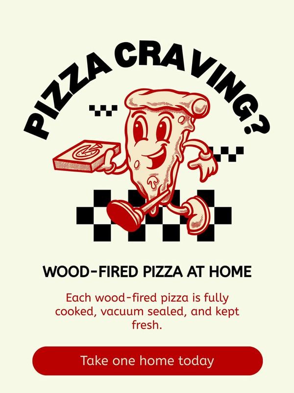 Fully cooked in our traditional wood-fired oven, vacuum-sealed, and refrigerated for maximum freshness. Simply reheat at home for restaurant-quality pizza in minutes.